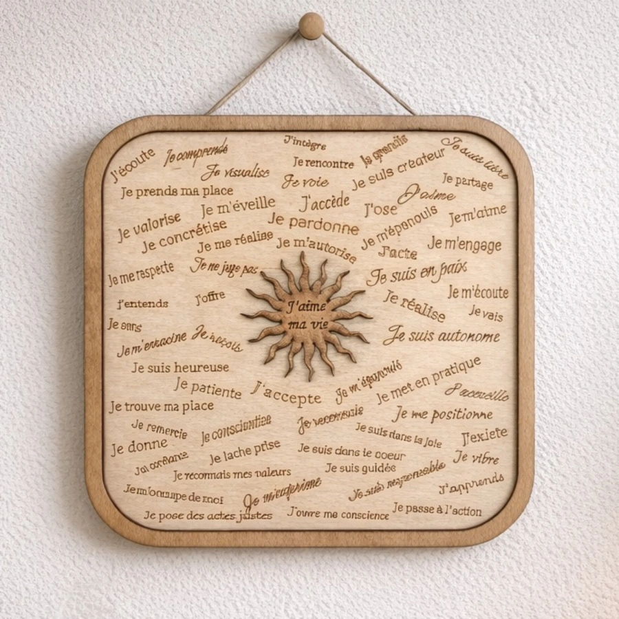 Ce tableau en bois gravé est bien plus qu'une simple décoration murale. C'est un véritable outil de développement personnel, conçu pour vous accompagner dans votre cheminement vers une meilleure estime de soi.